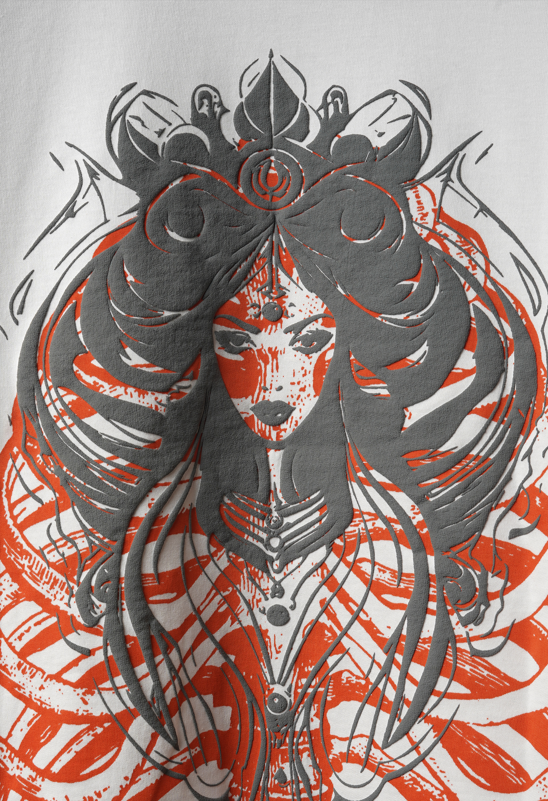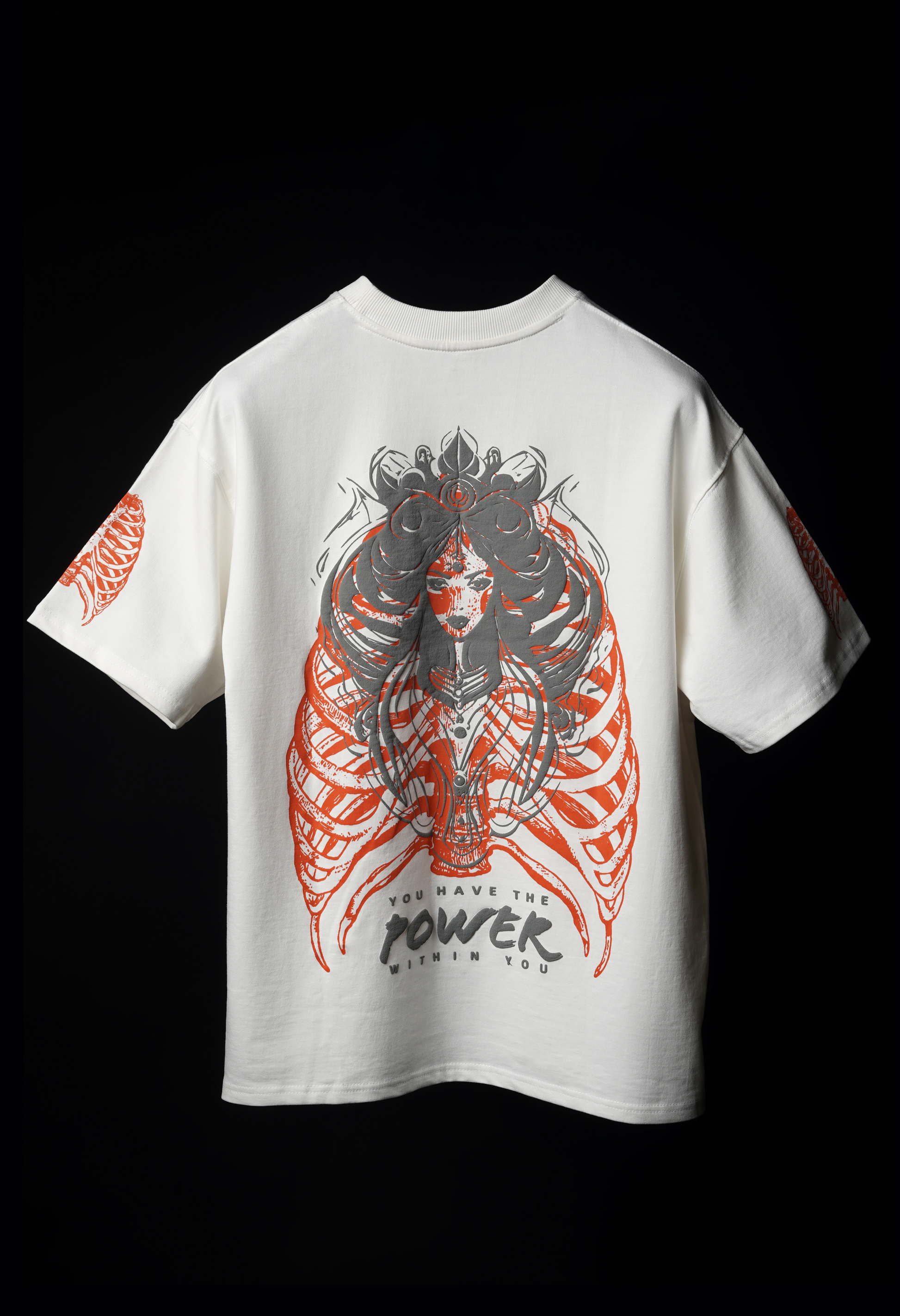 This statement piece is crafted for the fearless. Designed to channel inner strength, the "POWER" T-shirt" merges bold, artistic expression with the raw energy of individuality. The artwork on the back features a fierce, goddess-like figure encased within ribcage armor, symbolizing the power that resides within each of us. The design speaks to those who dare to stand out and lead with purpose.